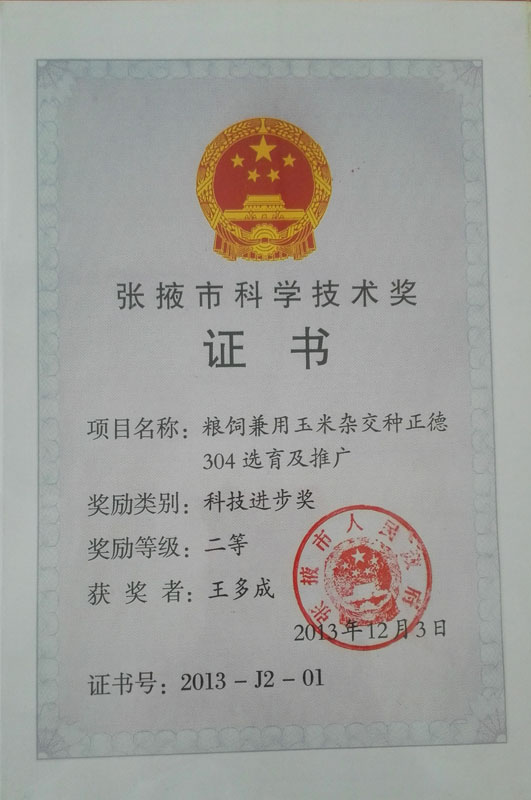 2013年榮獲張掖市科學(xué)技術(shù)二等獎…